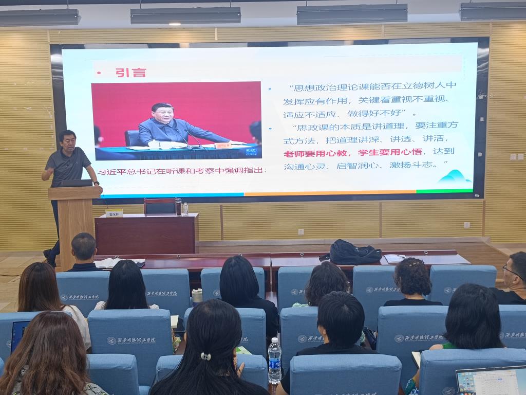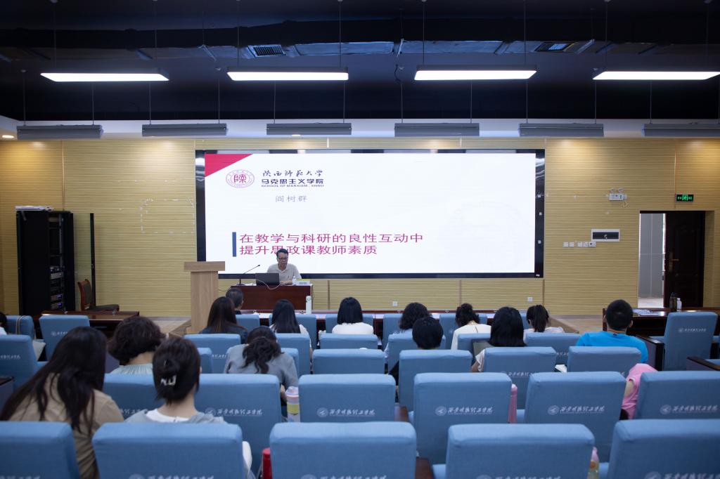 随后,马克思主义学院全体思政课教师集体聆听学习了五场专题报告。分别是:陕西省社会科学院副院长王建康教授作了题为《如何开展调查研究》、西北大学马克思主义学院院长何博教授作了题为《以学增智:提升新时代思政课教师的核心能力》、西安电子科技大学马克思主义学院夏永林教授作了题为《思政课教师讲好思政课的几个问题》、陕西科技大学马克思主义学院曾咏辉教授作了题为《魅力思政课经验谈--以“实现中国梦必须弘扬中国精神”为例》、陕西师范大学马克思主义学院阎树群教授作了题为《在教学与科研的良性互动中提升思政课教师素质》的报告。此外,学院组织了思政教师参加了由临沂大学和嘉兴大学举办的2023年全国高校思想政治理论课教师暑期实践研修班,并就相关参训内容进行了转训学习。