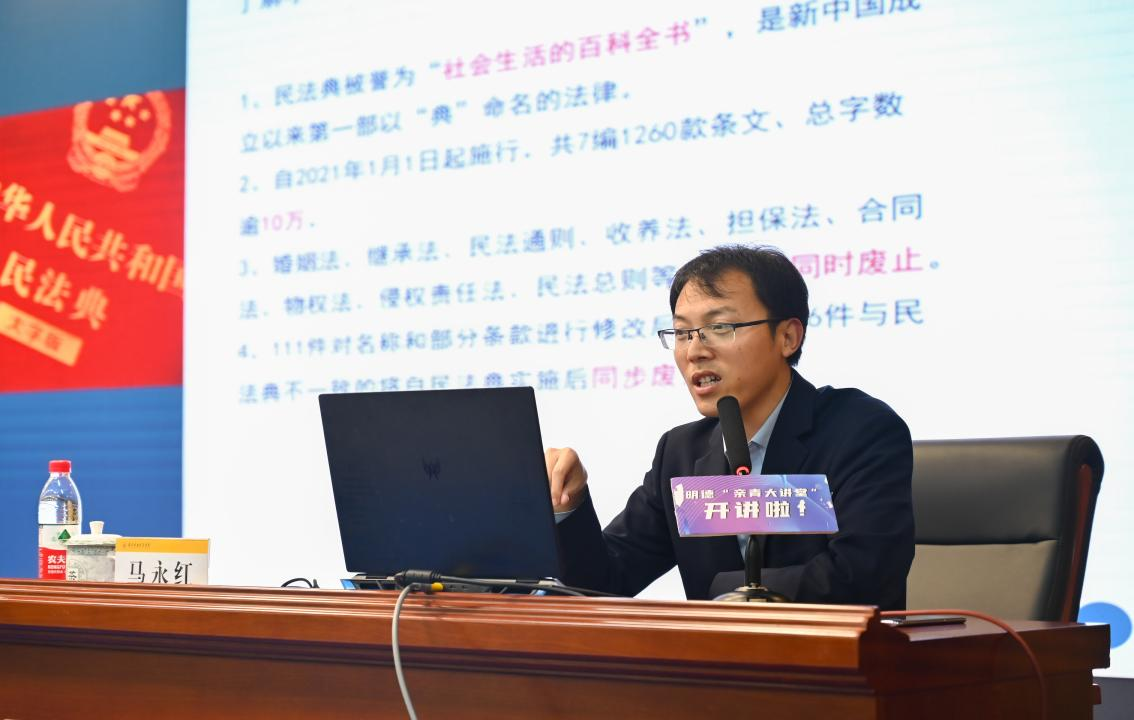 为进一步加强宪法学习宣传,大力弘扬法治精神,引导kaiyun官网师生树立宪法法律意识,创建和谐校园。12月12日下午,kaiyun官方网站登录入口马克思主义学院主办、校团委承办了第43期明德“亲青大讲堂”,马克思主义学院邀请了北京市康达(西安)律师事务所公益中心副主任、陕西益路人公益中心主任马永红在学校建德楼203报告厅作了题为《律师视角下大学生法律风险防范》的专题报告。马克思主义学院教师代表和学生代表共300余人参加了此次报告会。本次报告会由马克思主义学院与通识教育学院党委书记王君涛主持。